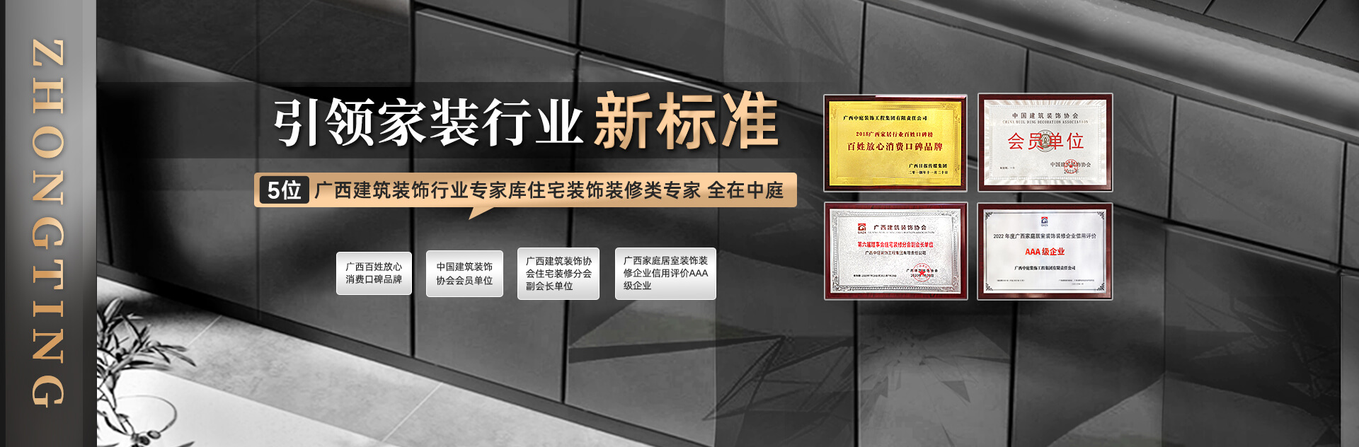 中庭裝飾,廣西品牌標桿裝企,廣西唯一5連A納稅企業,深耕行業15年,秉持“品質筑家,服務至上”理念,為廣西超10萬家庭提供“設計、施工、選材、售后”等全鏈路家裝服務,客戶滿意度98%,凈推薦值83%。